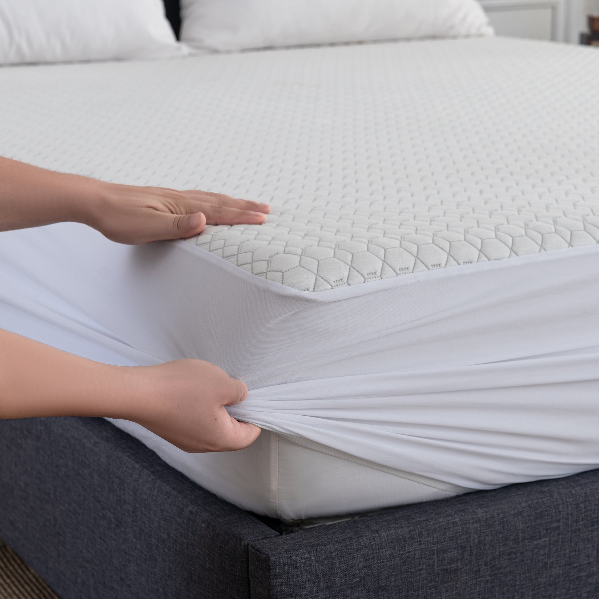 Our New SLUMBERSHIELD® Bamboo Bundle includes our bamboo essence pillow, our bamboo essence protector, and our bamboo viscose sheet set. This superior bundle wicks moisture away from your body creating the perfect microclimate for a cool and comfortable night’s sleep. It is hypoallergenic to inhibit growth of bacteria and dust mites, so it is ideal for those with allergies or asthma. Available in all sizes! (Twin and Twin XL includes 1 pillow, all other sizes include 2)